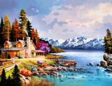 Алмазная вышивка «Домик у горного осеннего озера» 40x50 см