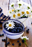 Алмазная вышивка «Натюрморт с голубикой и ромашками» 40x50 см