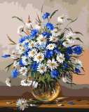 Картина по номерам «Васильки и ромашки в кувшине» 40x50 см